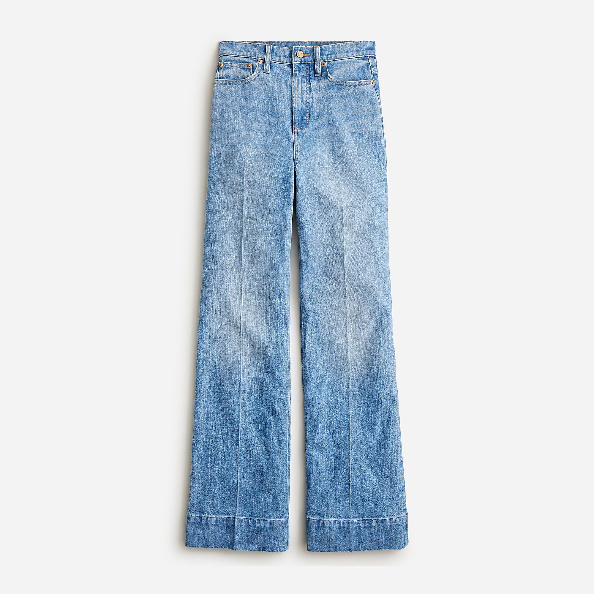 • Fitted at the hip, easy through the thigh, with a full-length wide-leg